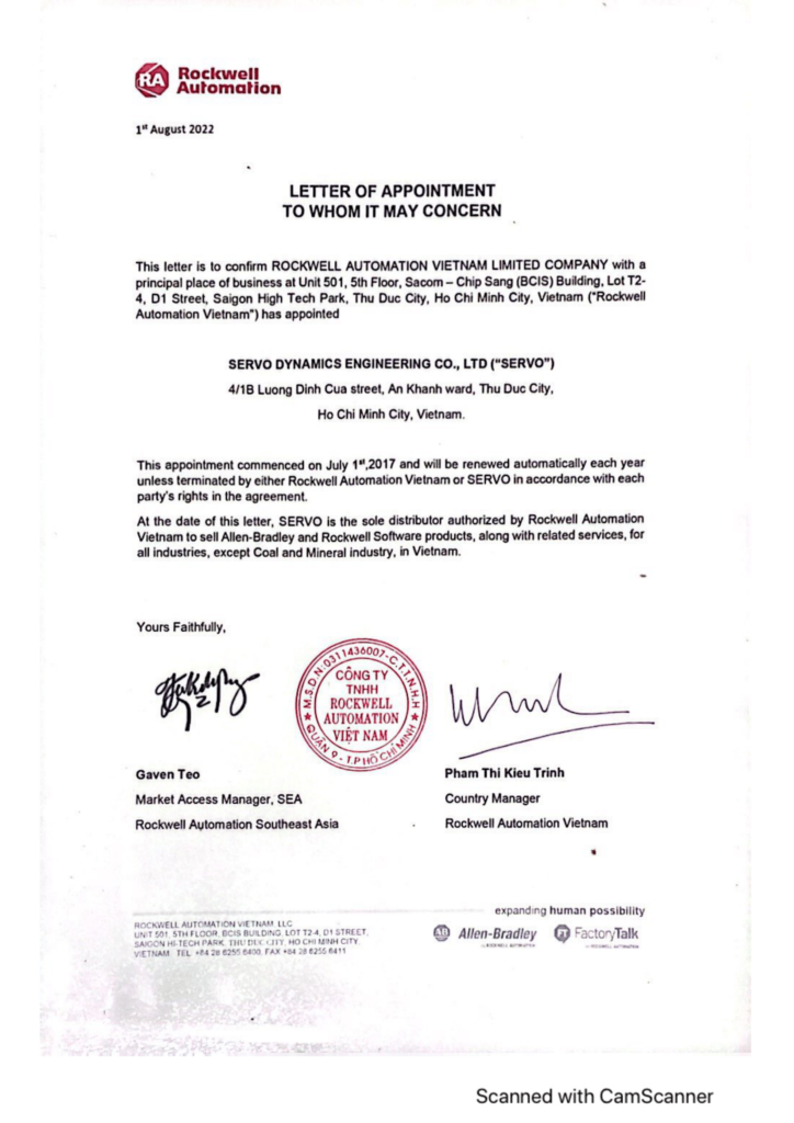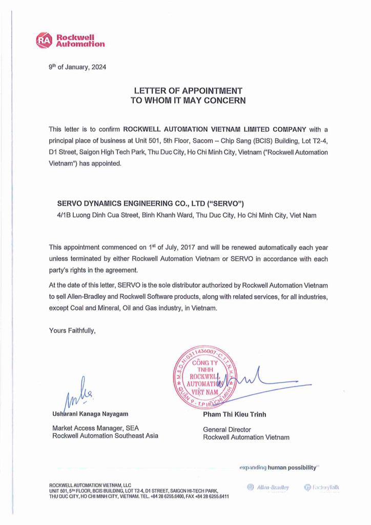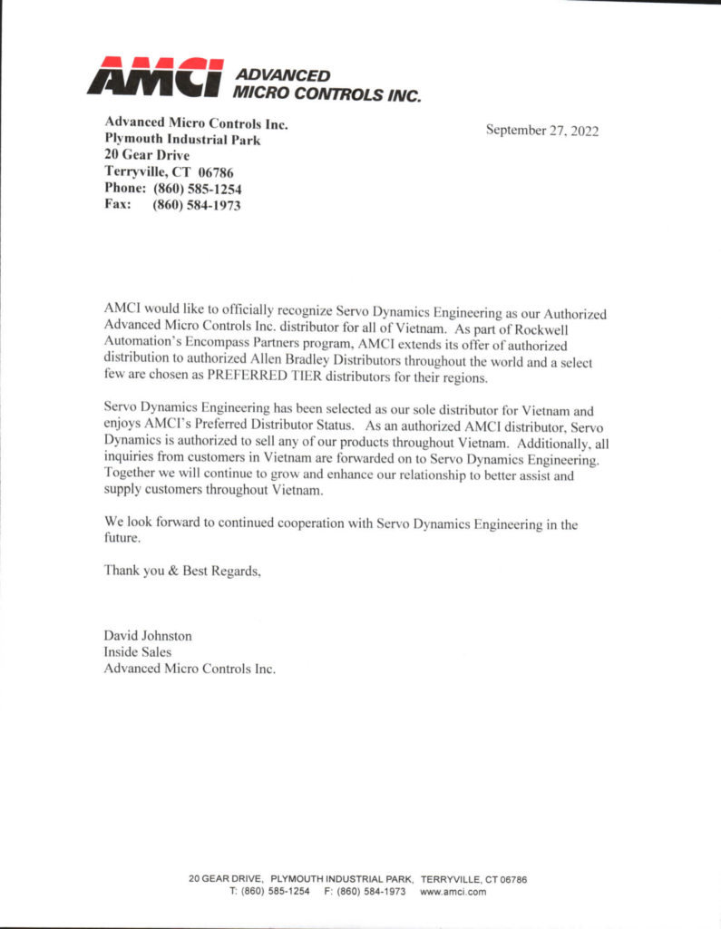 Customers in Vietnam will be able to transition to Servo Dynamics Engineering for order placement, fulfillment, inquiries, full technical support and customer service and they also added focus and value to customer relationships