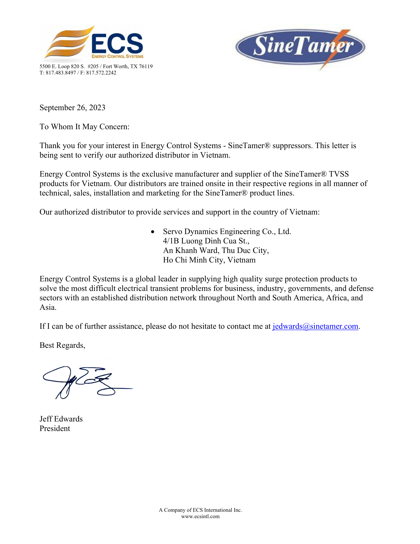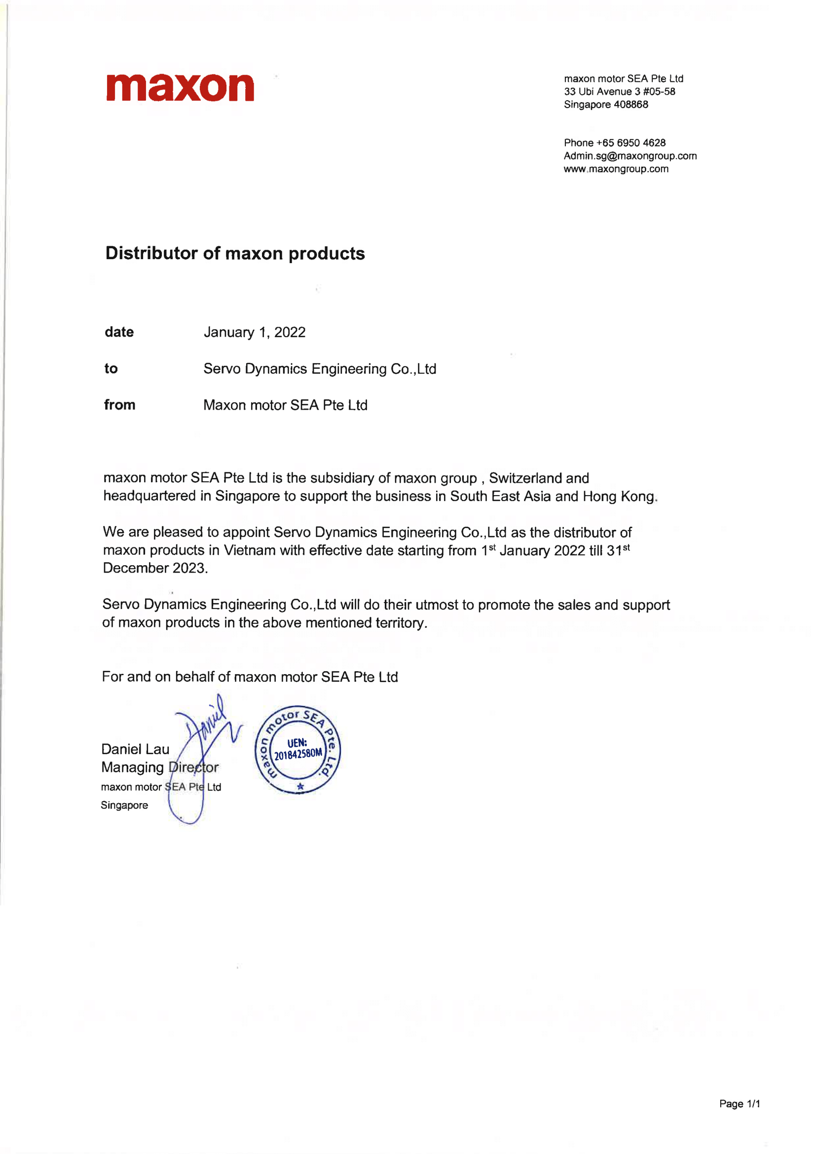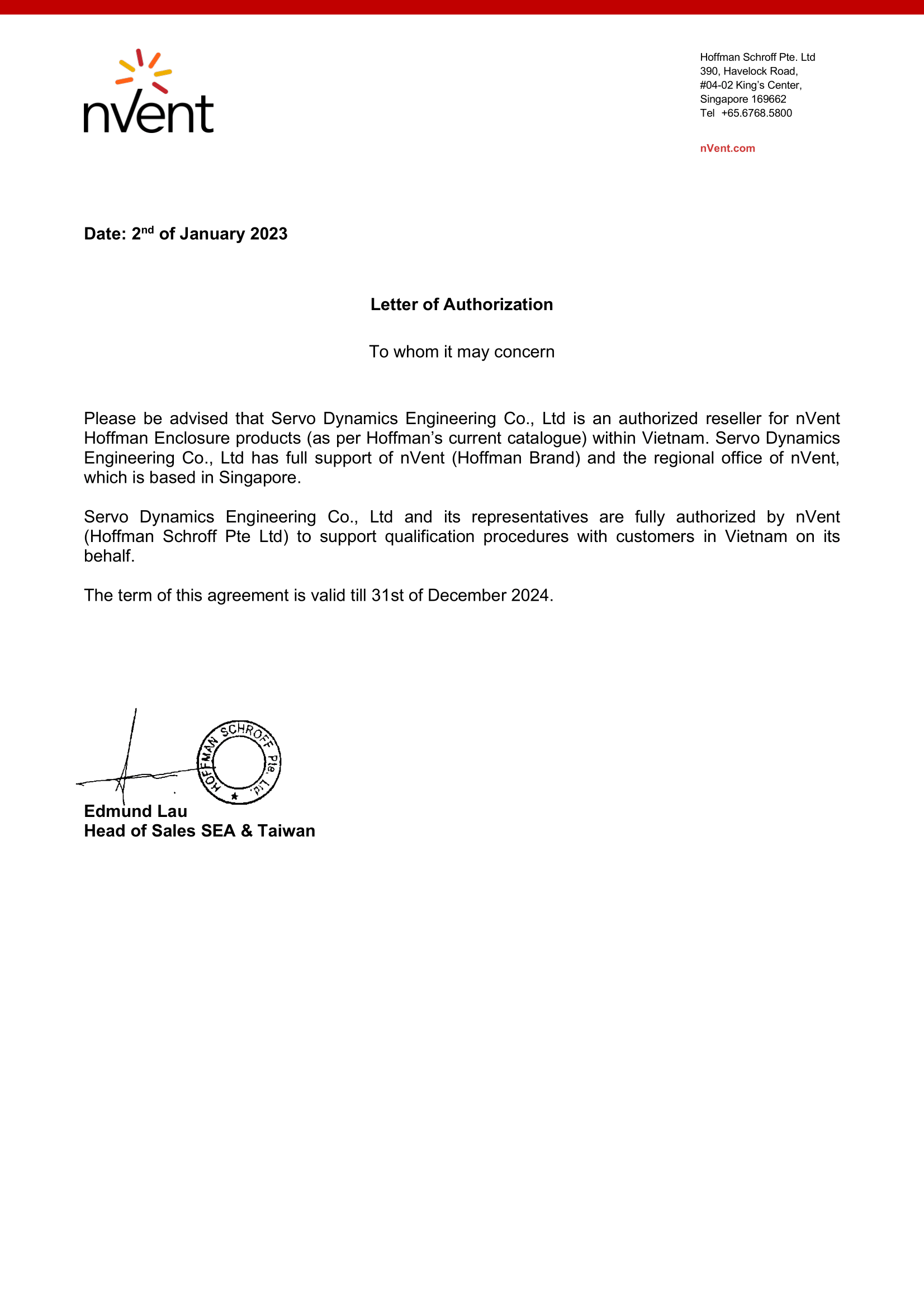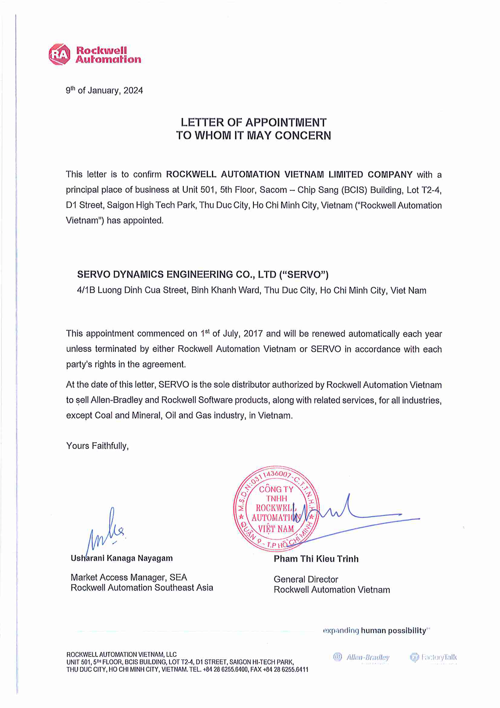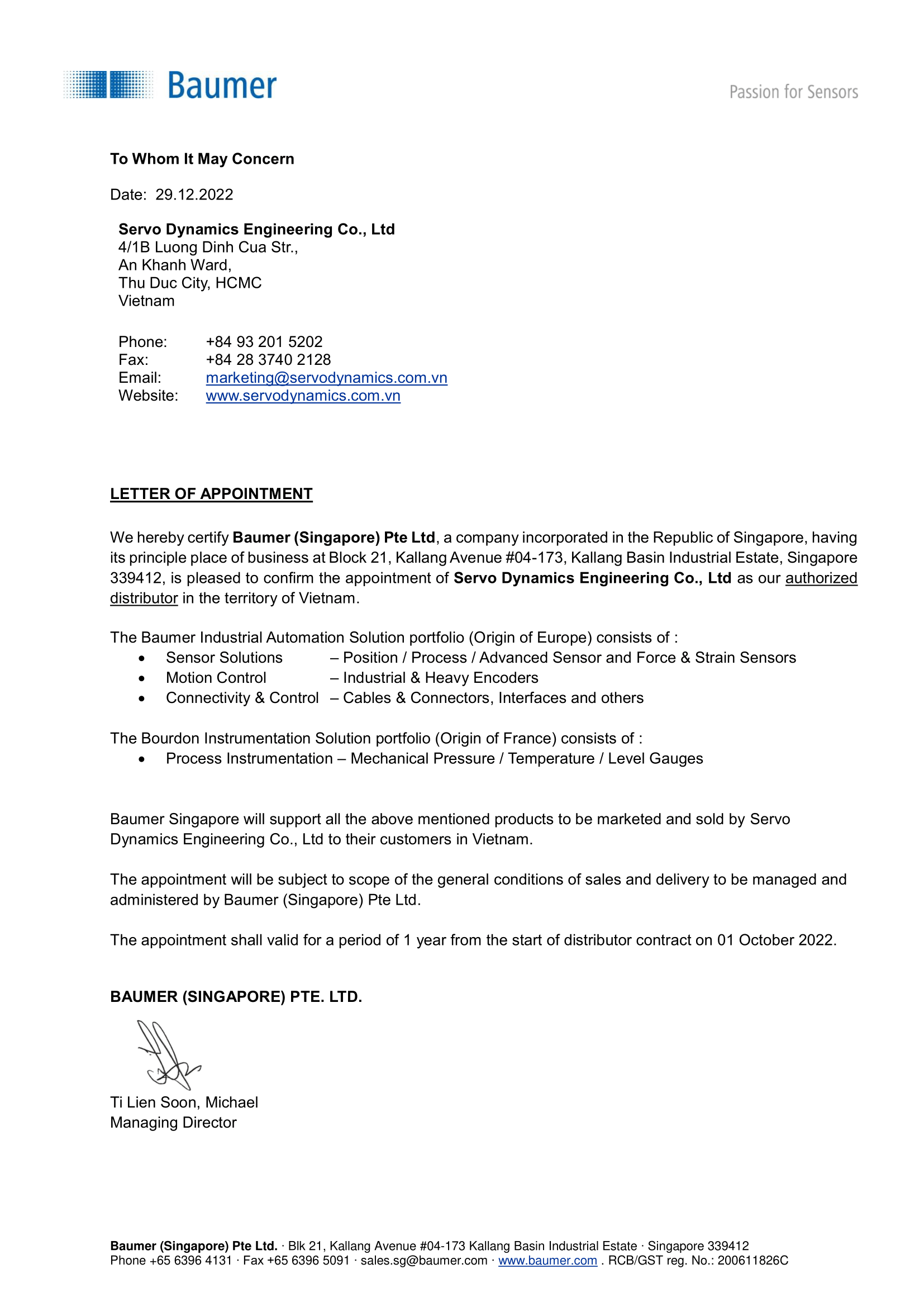 In choosing Servo Dynamics Engineering, we selected a distributor with the capability and experience to enhance our strong standing in the Asia Pacific region and position us for long-term sustainable growth in Vietnam.