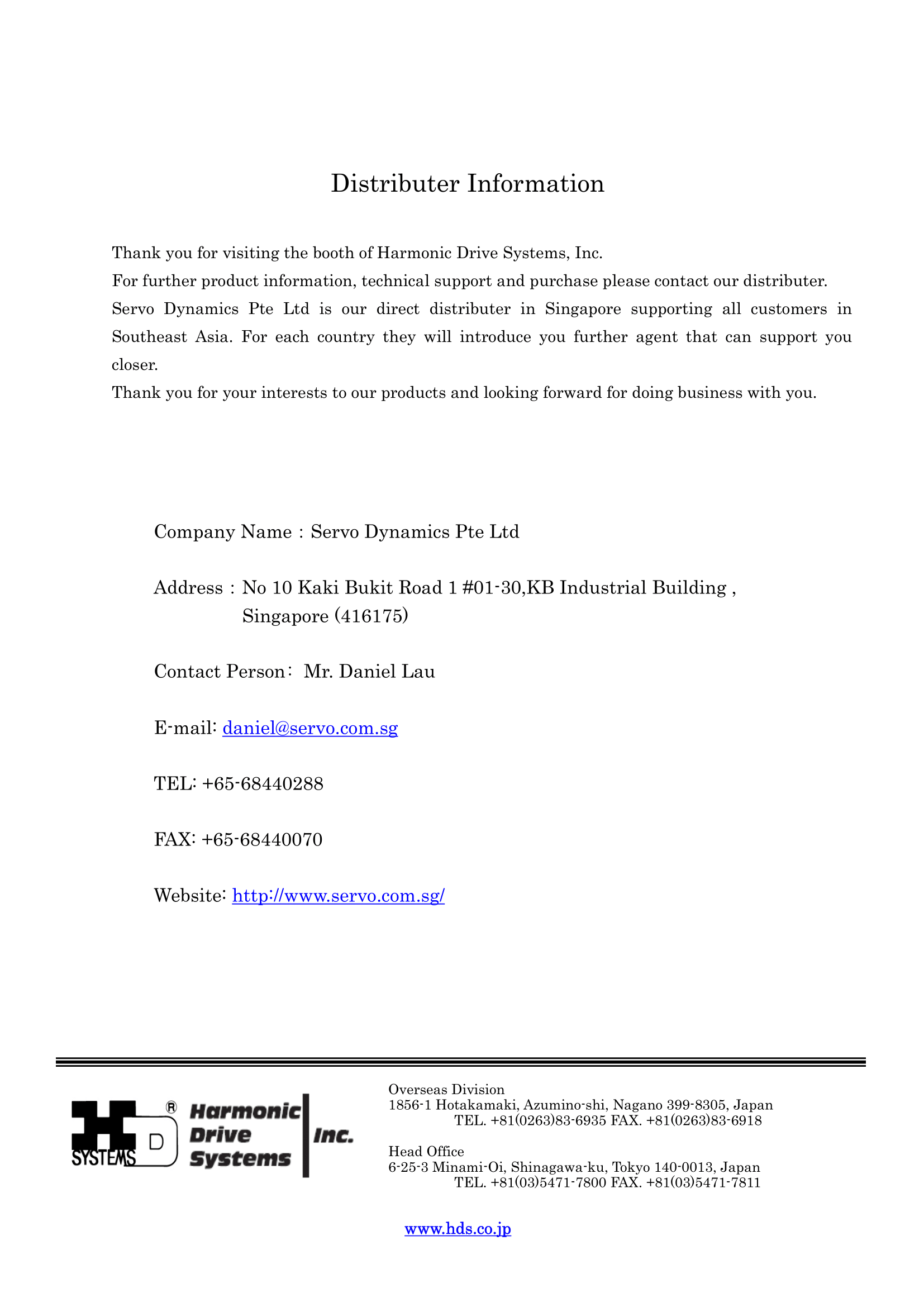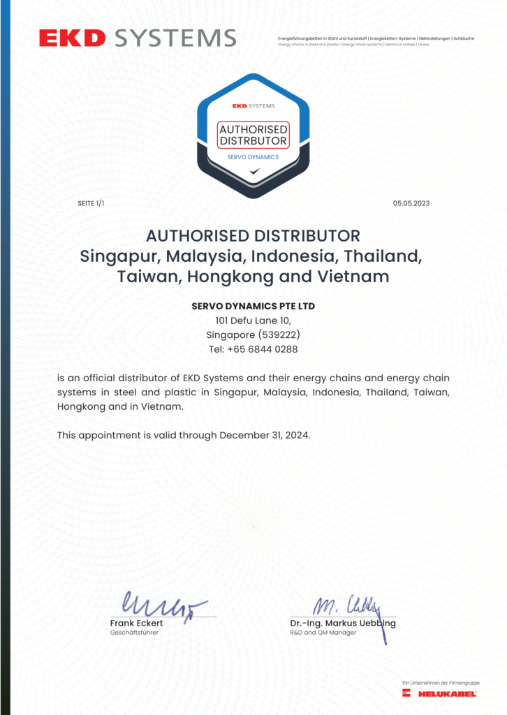 Incorporation of Servo Dynamics Pte Ltd (SD), a leading Industrial Automation & Motion Control distributor in Asia.