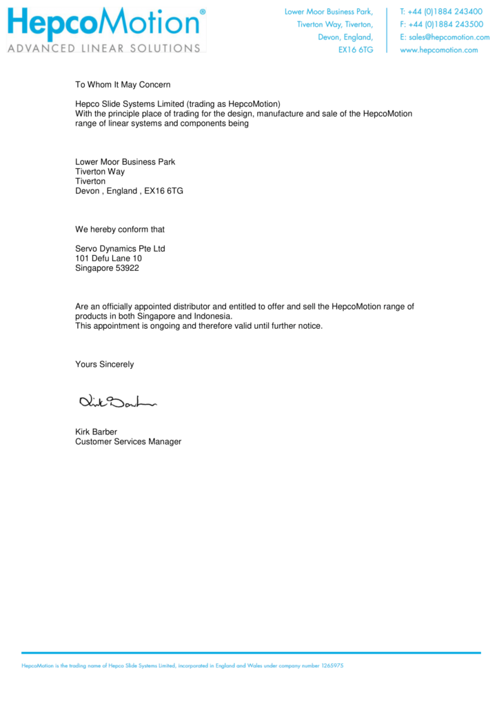 We view our appointment of Servo Dynamics Engineering as a testament to our strong commitment to the region and look forward to working closely with them to enhance our customer loyalty and to benefit our businesses.